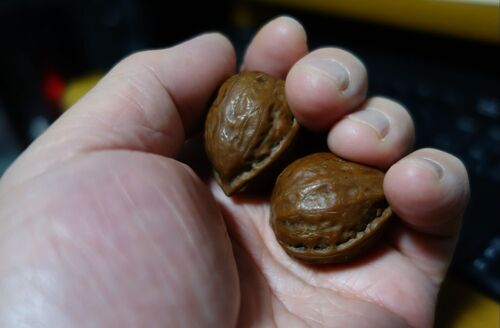 10月31日に郡山市のリハビリテーション病院を退院してから、ほぼ毎日欠かさず行っている自宅周りの農道散歩。その途中には自然に生えたらしいオニグルミの木が数本あります。 入院していたとき同室だった“Nさん”が、麻痺の出た左手指の動きを良くするのにク…