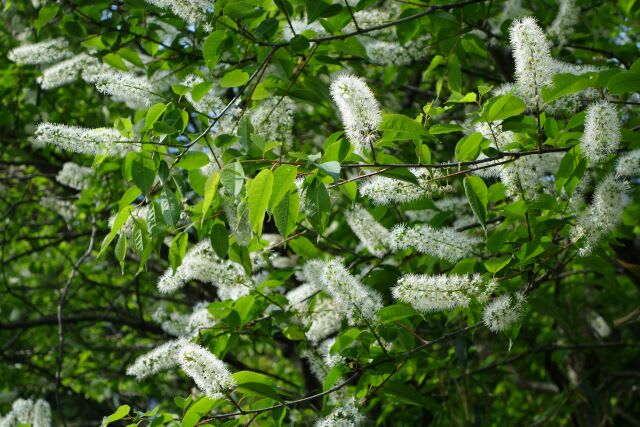 道路に覆い被さるようにして花をつけていたのはウワミズザクラ(上溝桜)。