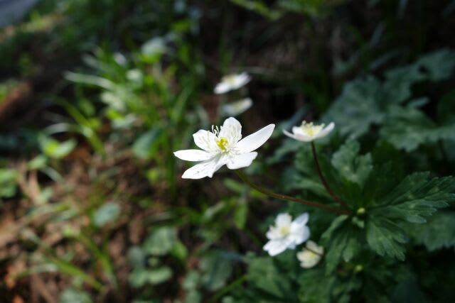 道ばたに咲いていたのはニリンソウ。道の駅では鉢植えにして販売されていました。鉢植えになって値段が付くと、さも貴重なものにみえていましますが、どこにでもある雑草みたいなものなのだと思います。