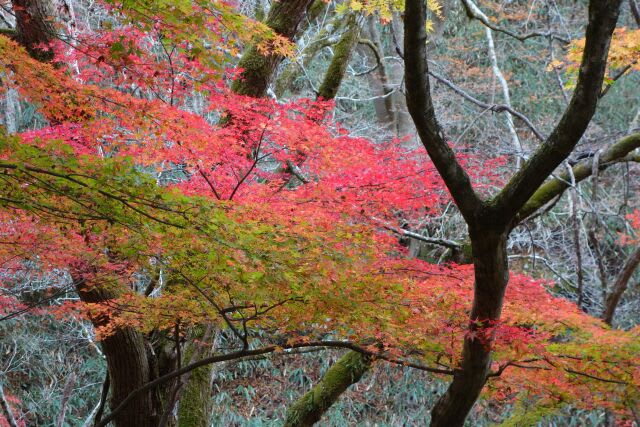 出がけには晴れていた空も、いまは一面の雲に覆われてしまい、せっかくの紅葉もくすんでいるみたいです。