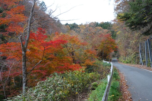 一部で綺麗な紅葉はありましたが、大部分はすでに時が遅かったのか、モミジの葉が茶色くなって縮み始めていました。そこで、夏井川の支流となる鹿ノ又川渓谷へ行ってみることにしたのです。