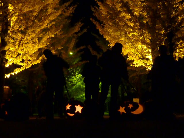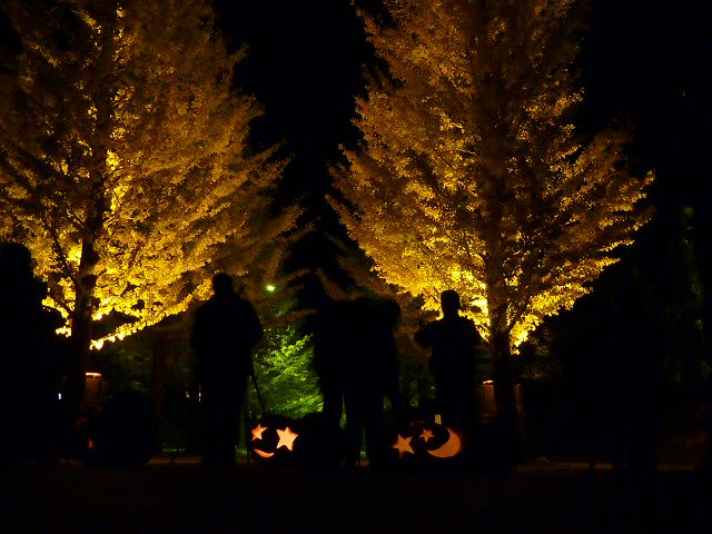 自転車に乗ってひとり遊んでしまった罪滅ぼしというわけではないのですが、みちのく自転車道から戻り一風呂浴びて、「よーし、イチョウ並木のライトアップ見に行くぞ!」ということになったんです。