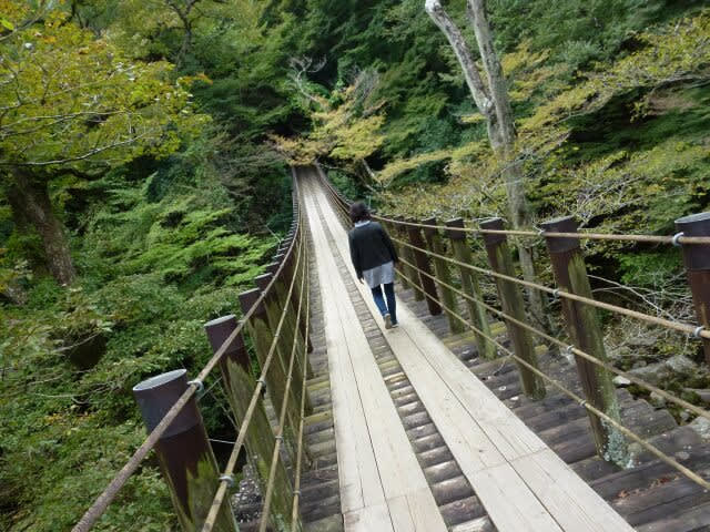 ネットで花貫渓谷の写真を見ると、この吊り橋が写っているものがとても多いのです。そこで、わたしたちもここへやってきたという訳なんです。
