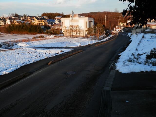 上の2枚の写真は午後5時少し前の様子です。日中は暖かかったとみえて道路も歩道もすっかり雪が消えていました。節分も過ぎて、やはり春の雪なんですね。
