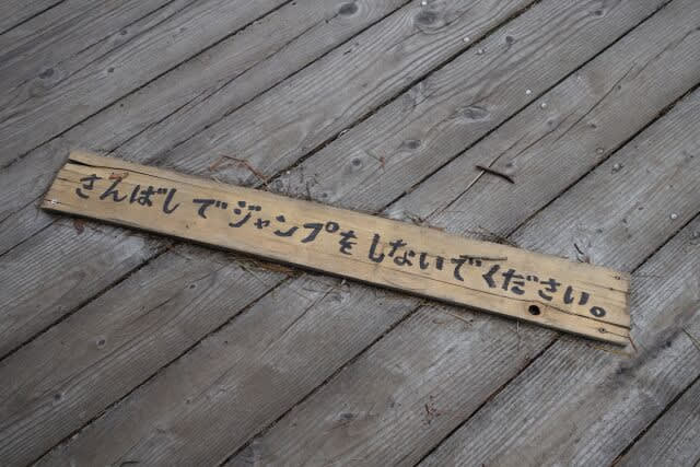 ここでジャンプはダメだそうです。桟橋の下に隠れている鯉を追い出そうなんていう人がいたりするんでしょうか。そんなことして壊れてハマっちゃうと大変だからでしょうね。