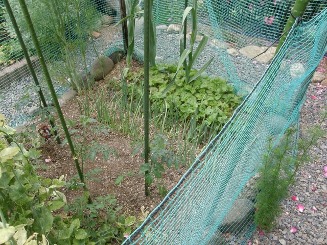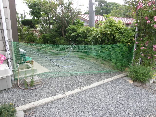 家屋の脇にある菜園スペース全体を、ネコが入れないようにネットで囲みました。こうしておけば、ネコは入れませんからね。これは100%の効果がありました。
