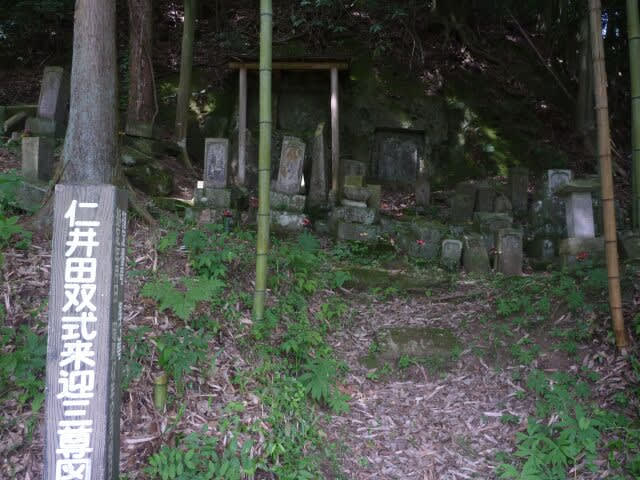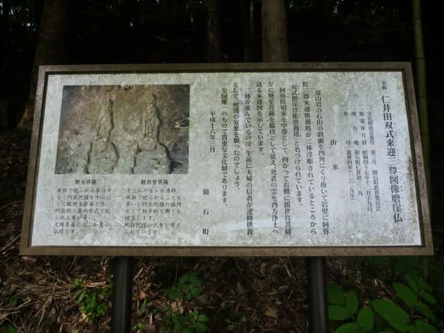 国道4号線を突っ切って、帰りの県道55号線に向かっていると「仁井田双式磨崖像(にいたそうしきまがいぞう)」という案内板がありました。前から案内板だけは見ていましたが、きょうは折角なので実物を見て行くことにしました。