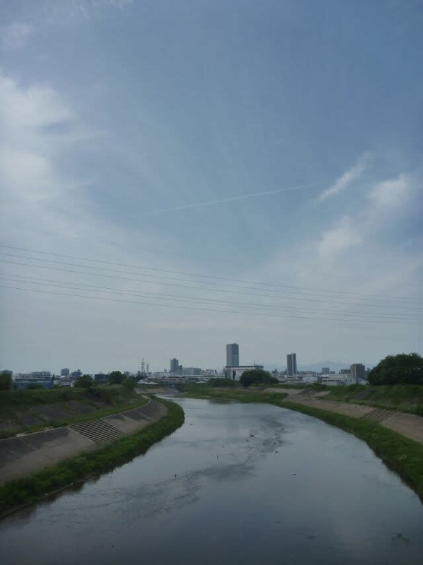みちのく自転車道定点観測ポイント、逢瀬川にかかる横塚橋の上からビッグアイ方面をパチリ。
