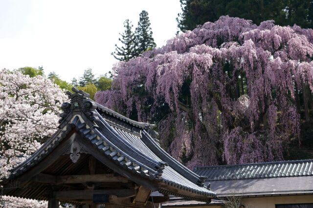 福聚寺から少し下がったところにこの桜はあります。福聚寺の枝垂れ桜を飽きるほど撮ったお父さんが、立派なカメラを三脚ごと担いで帰って行きます。