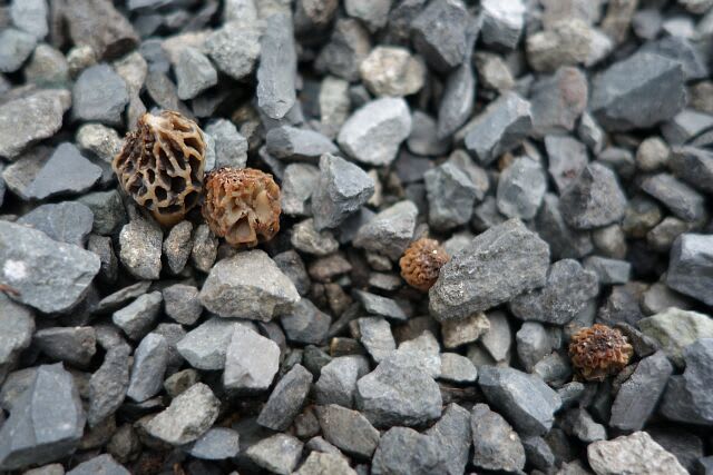 震災後、福島第一原発の事故でばらまかれた放射能。その除染のために柴を剥いで砂利を入れた庭の一画にキノコがポコポコと出始めたんです。これはアミガサタケというキノコ。震災前にも一度庭に出たのを調理して食べたことがあります。