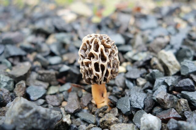 【アミガサタケ】アミガサタケ科アミガサタケ属に属する子嚢菌類のキノコの一種。