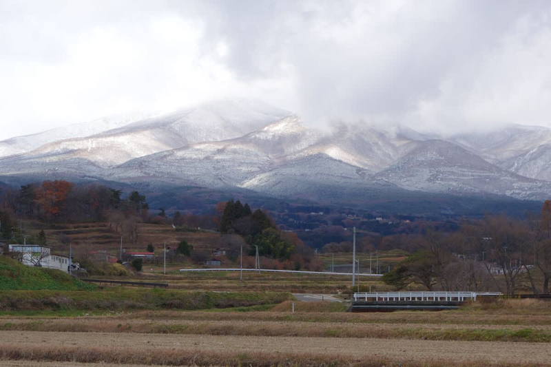 ここのところ寒い日が続いていて、庭先から見た安達太良山は大分下の方まで白くなっています。