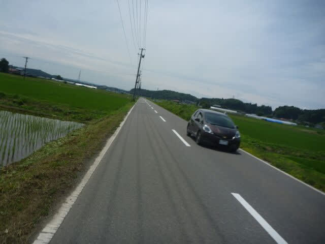 矢吹町のどこまでも続く3.7キロの直線路です。ここも2段目のギアで走ります。