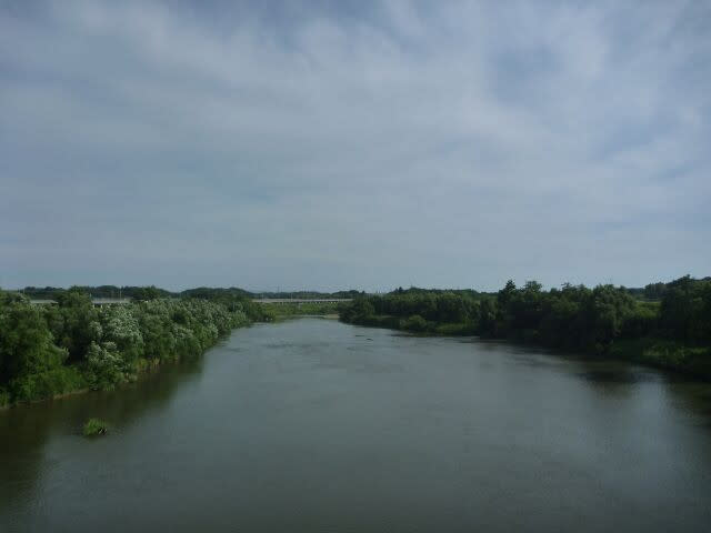 阿武隈橋から上流方面。ここからわが家までは約3キロ。ママチャリを軽めのギアでクルクル走った『本日の走行距離114.58 走行時間5:44 平均速度20.0 消費カロリー2381』、とにかく暑い日でした。家に帰ったらむき出しの腕がヒリヒリ、大失敗!日焼け止めを塗るのを忘れました。