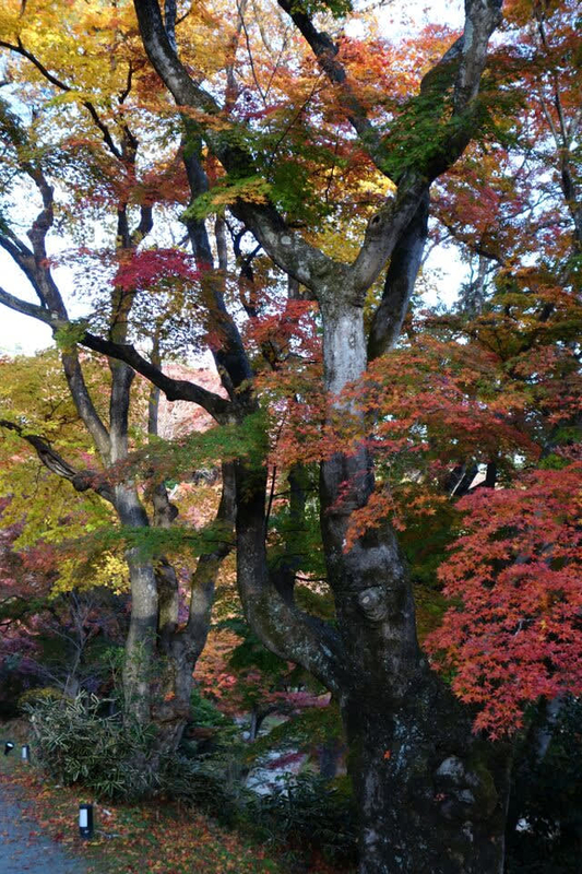 園内には沢山のもみじがあって、西日の当たっている部分は紅葉が燃えるように輝いています。
