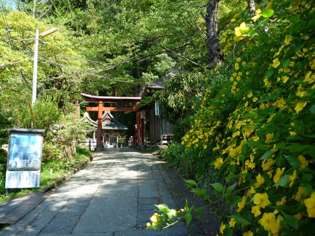 正面から左になる参道にはヤマブキが鮮やかに咲き乱れていました。