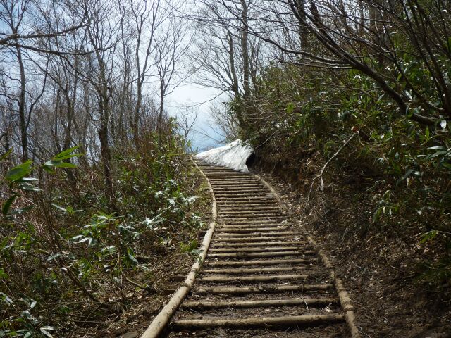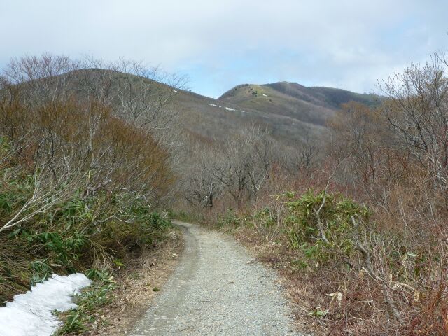 山頂にだいぶ近づいてきました。山肌にはまだ残雪があります。