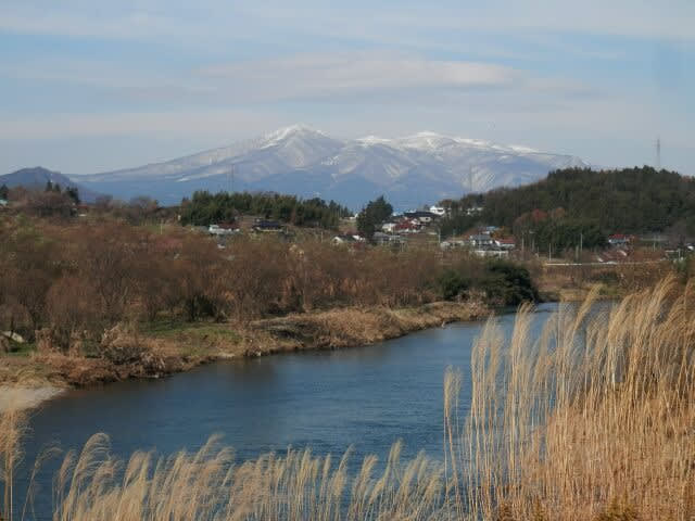 阿武隈川と安達太良山。日差しが暖かくてなんだか早春のような感じです。