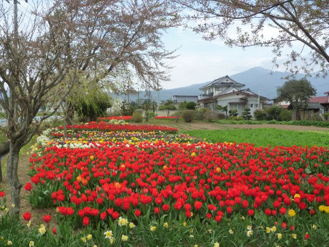大玉村を走っていると、住宅地に面した畑に驚くほど沢山のチューリップが植えられていました。