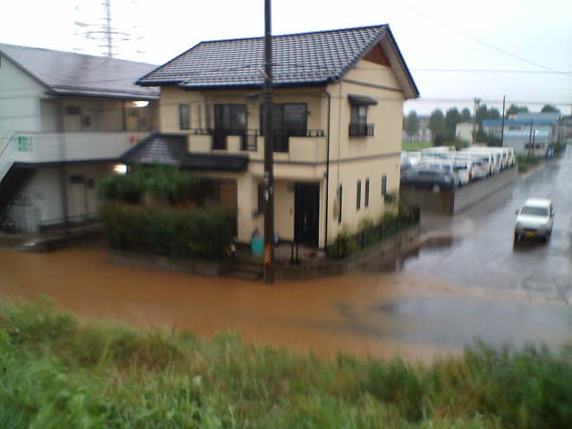 みちのく自転車道から見える郡山市内の住宅地では、いたる所でこんな状態になっていました。結構な降りでしたから、側溝などに飲みきれない水が溢れたようでした。
