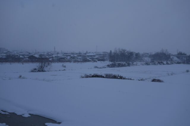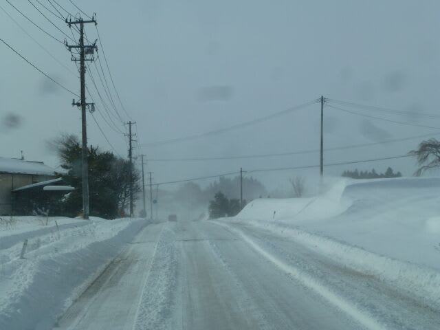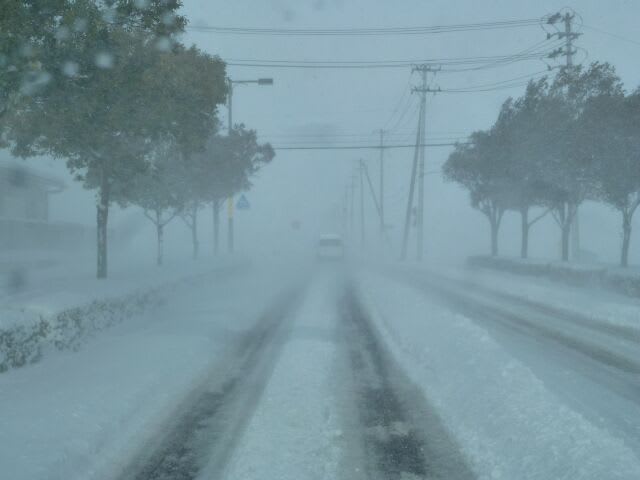 午前8時30分、市内を走っていますが、時折吹く“ふきらんぷ(地吹雪)”で前が霞みます。