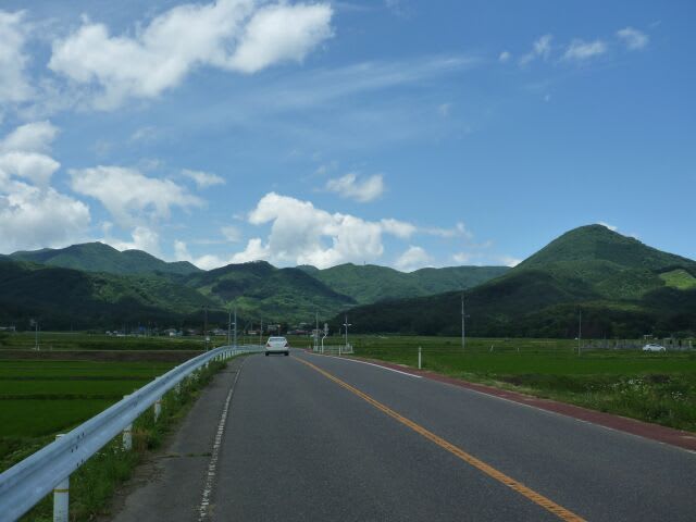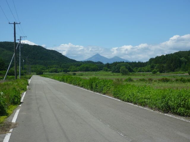 6月23日、安達太良の上に雲は沢山ありますが、ここにはお日様がたっぷりと降り注いで絶好の自転車日和になりました。
