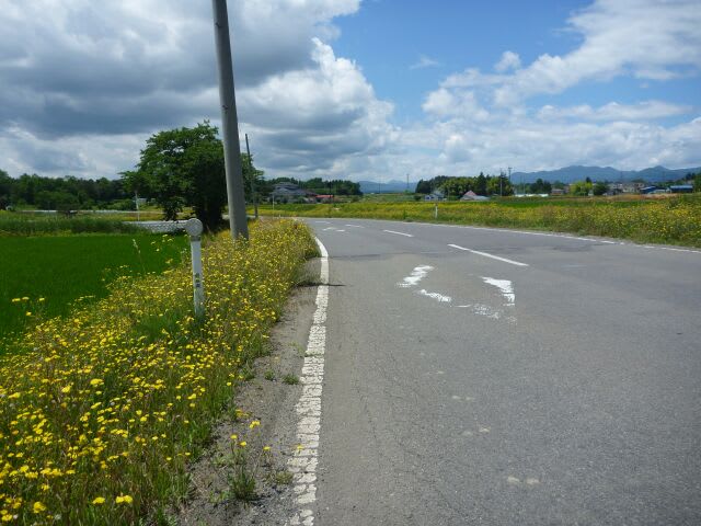 きょうはここ永盛小学校手前でみちのく自転車道から離脱です。きょうは諏訪峠を目指しているんです。