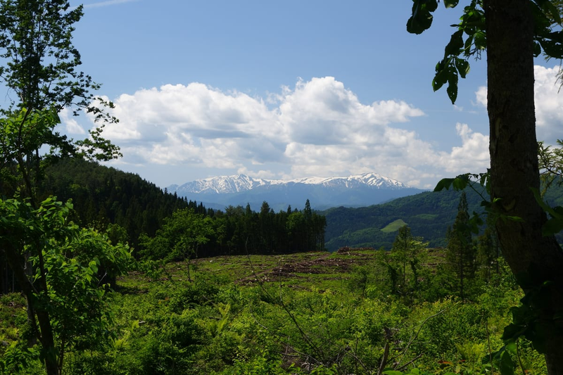 (2020.6.8 喜多方方面の山中より飯豊連峰を望む)