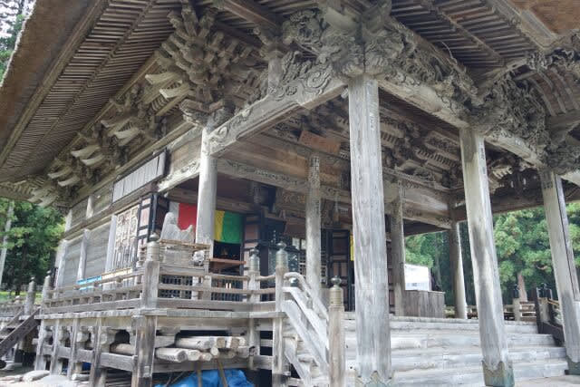 それは、この重厚な茅葺屋根にあるんだと気づきました。今までに見たどんなお堂より建物に比して大きく高い屋根。おそらくは雪国ゆえの形状なんだと思います。