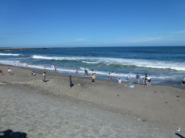 まだまだ強い日差しの中、海の中ではサーファー達が・・・